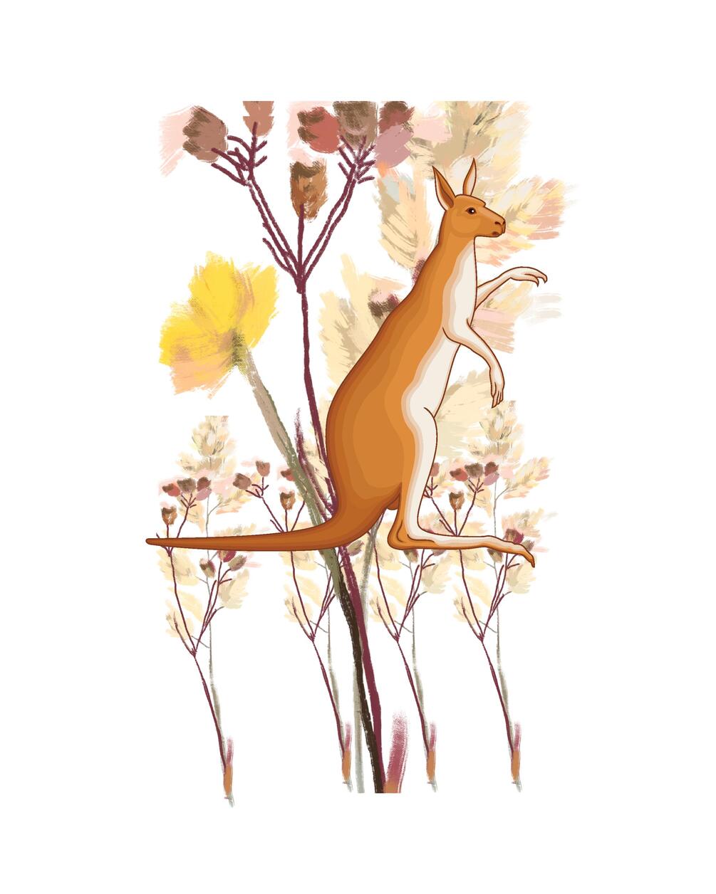 This unique downloadable art print can be placed on your wall or desk to make the space more attractive and lively. It comes in different ratios (11:14, 5:7, 2:3, 3:4, 4:5), giving you a wide variety of sizes to choose from. The kangaroo and an added touch of flowers have a realistic detailing, making it a great gift for any nature lover. Remarkably, the wildflowers add a cheerful pop of color and make this item a great addition to any space. The kangaroo and flowers combination is sure to make anyone smile and feel warm.